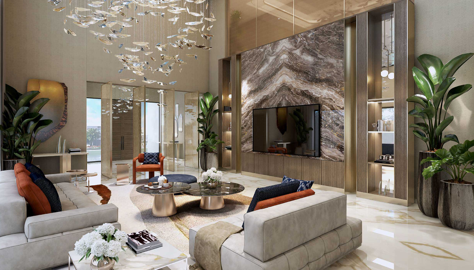 Imposing double height entrance lobby with luxury finishes